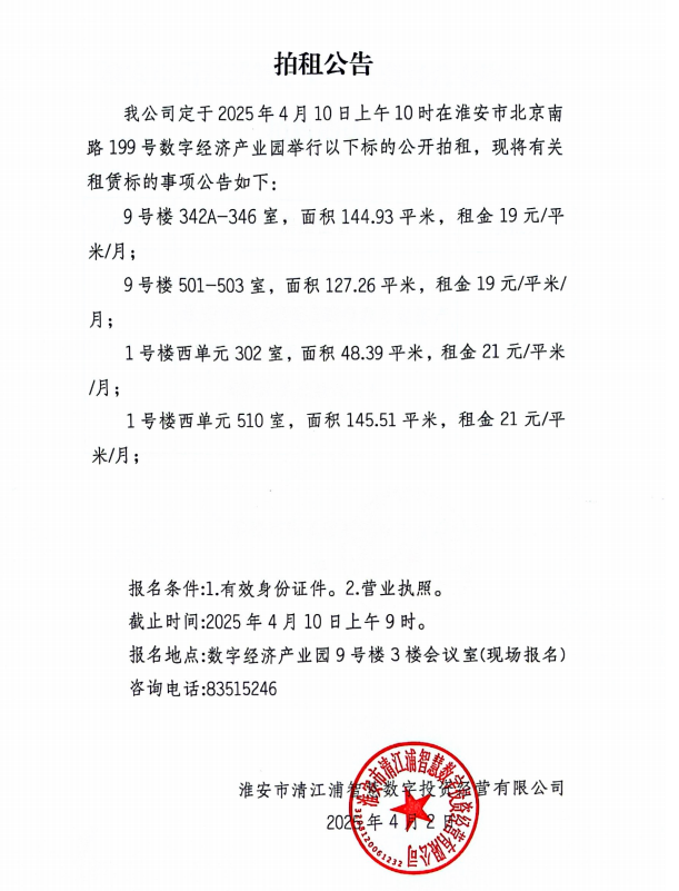 淮安市北京南路199號數(shù)字經(jīng)濟產(chǎn)業(yè)園4.10公開拍租