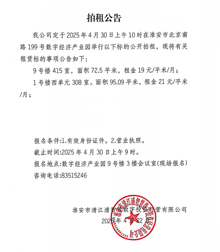 淮安市北京南路199號數(shù)字經(jīng)濟產(chǎn)業(yè)園4.30公開拍租