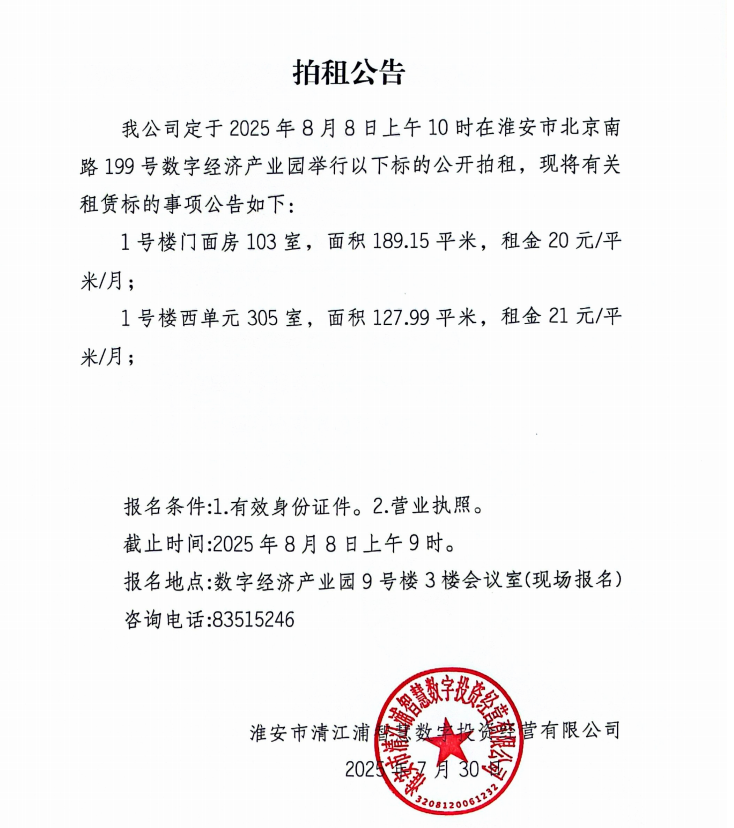 淮安市北京南路199號數(shù)字經(jīng)濟產(chǎn)業(yè)園8.8公開拍租